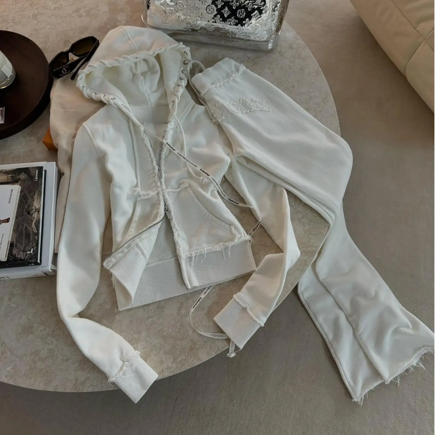 Women's Gym Wear 2-Piece Set Zip-Up Long Sleeve Jackets High Waist Seamless Flared Pants Embroidered Knitting Solid Yoga